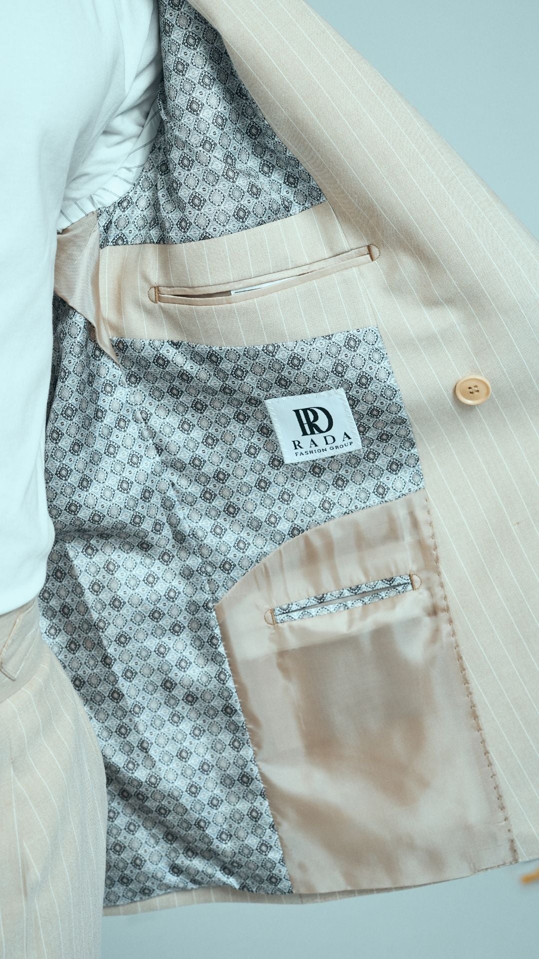 🕴 Eleganter Anzug in Beige mit gestreifter italienischer Hose, doppelreihig