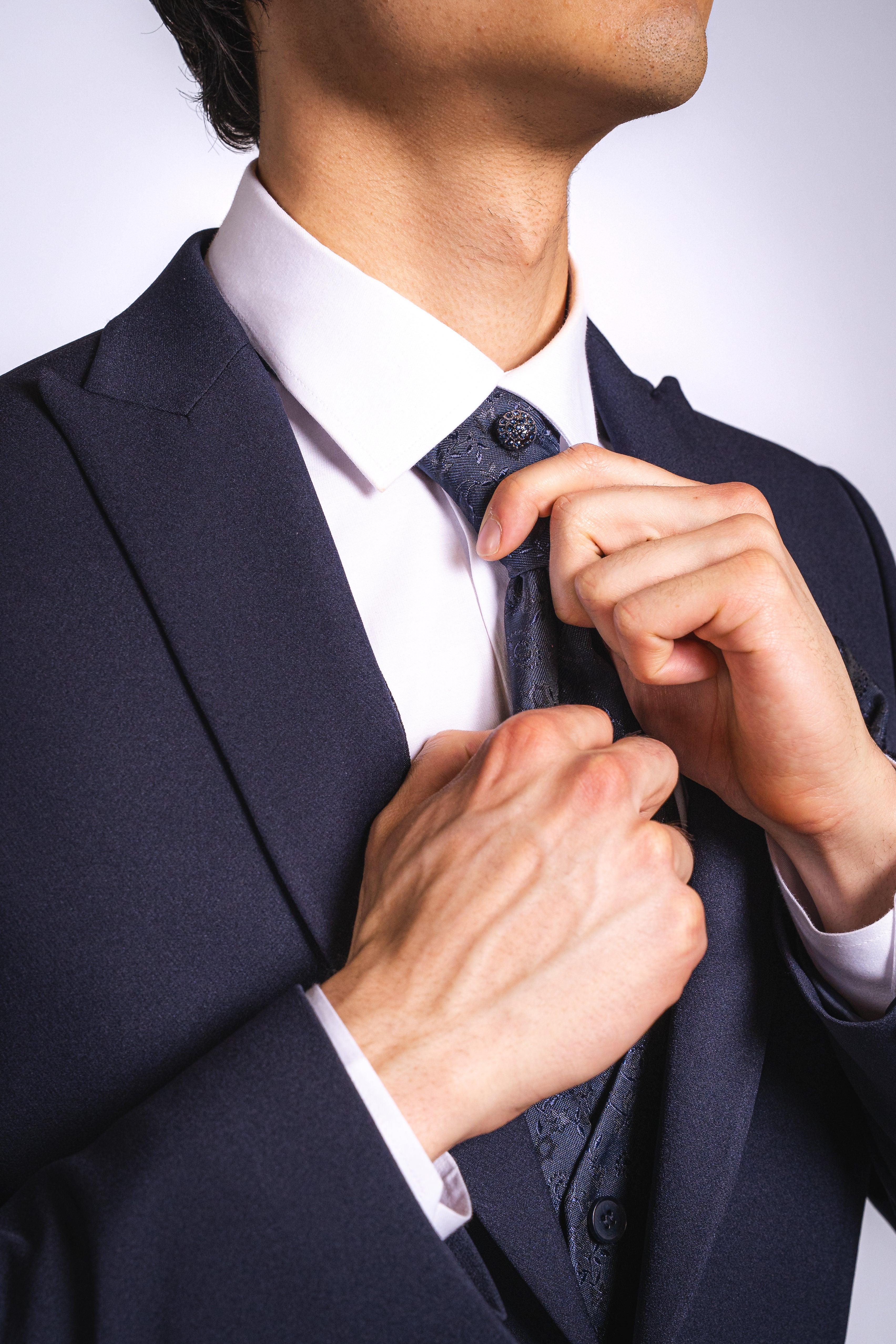 Eleganter 3-teiliger Anzug in Dunkelblau mit gemusterter Weste. Der Slim-Fit-Schnitt sorgt für eine moderne, taillierte Silhouette, während die hochwertige Verarbeitung maximalen Komfort und luxuriöse Optik bietet – ideal für Business, Hochzeiten und festliche Anlässe.