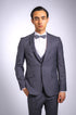 Eleganter 3-teiliger Anzug in Grau mit passender Fliege. Der Slim-Fit-Schnitt sorgt für eine moderne, taillierte Silhouette, während hochwertige Materialien Komfort und luxuriöse Optik bieten – perfekt für Hochzeiten, Business oder festliche Anlässe.