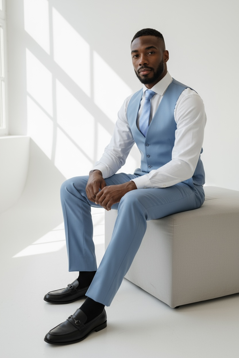Bedj Anzug Hellblau Wolle | 3-teilig, elegant & modern