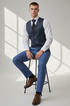 Eleganter 3-teiliger Anzug in Blau mit gemusterter Weste