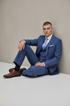 Eleganter 3-teiliger Anzug in Blau mit gemusterter Weste