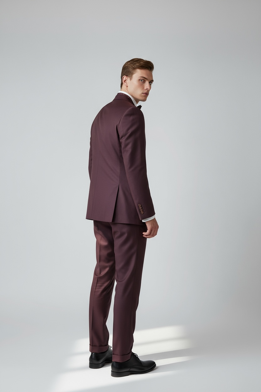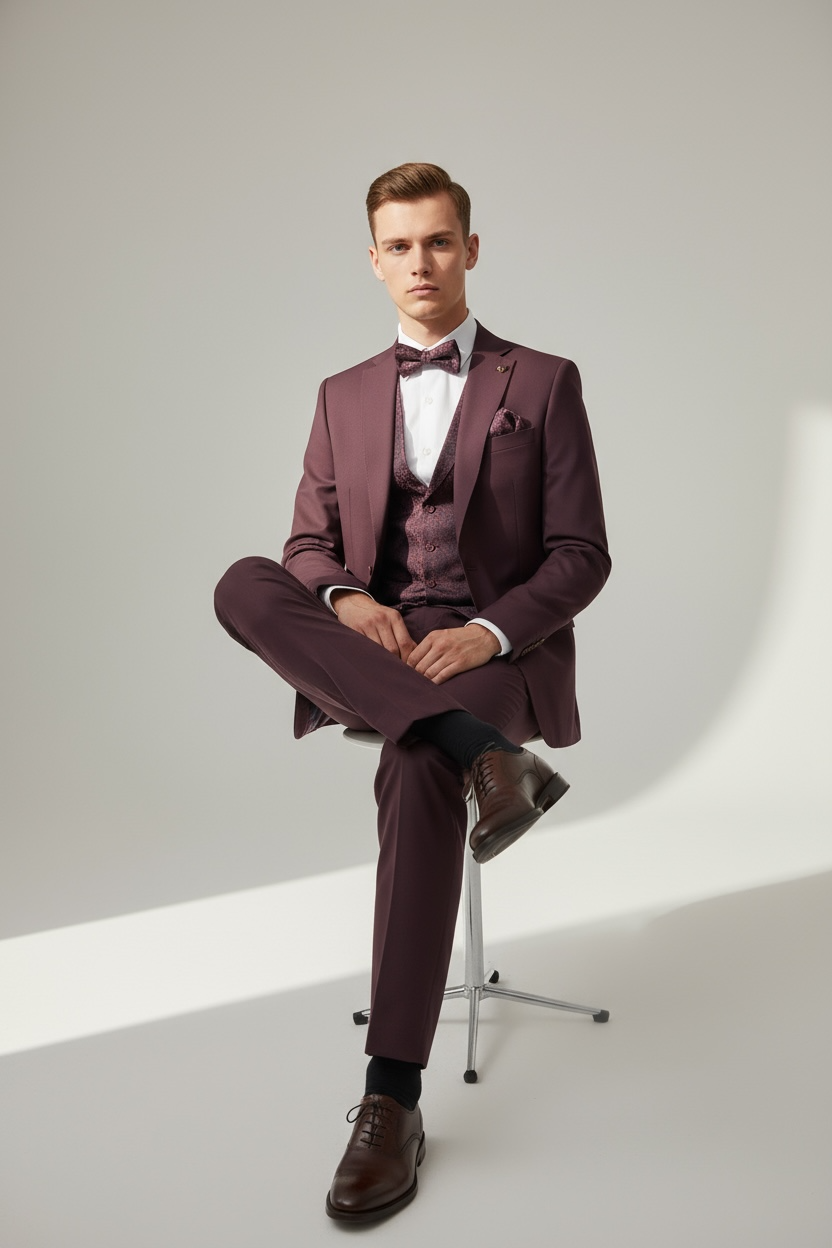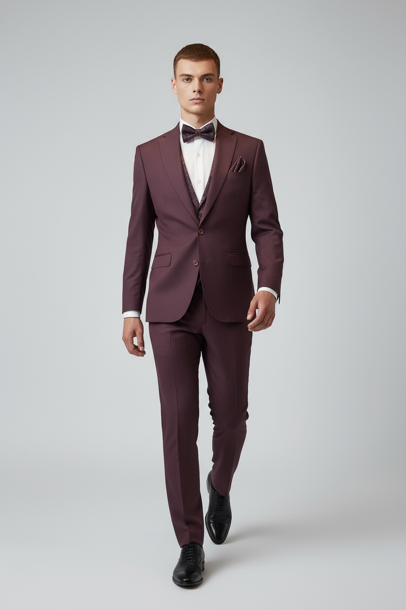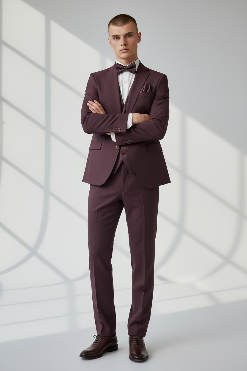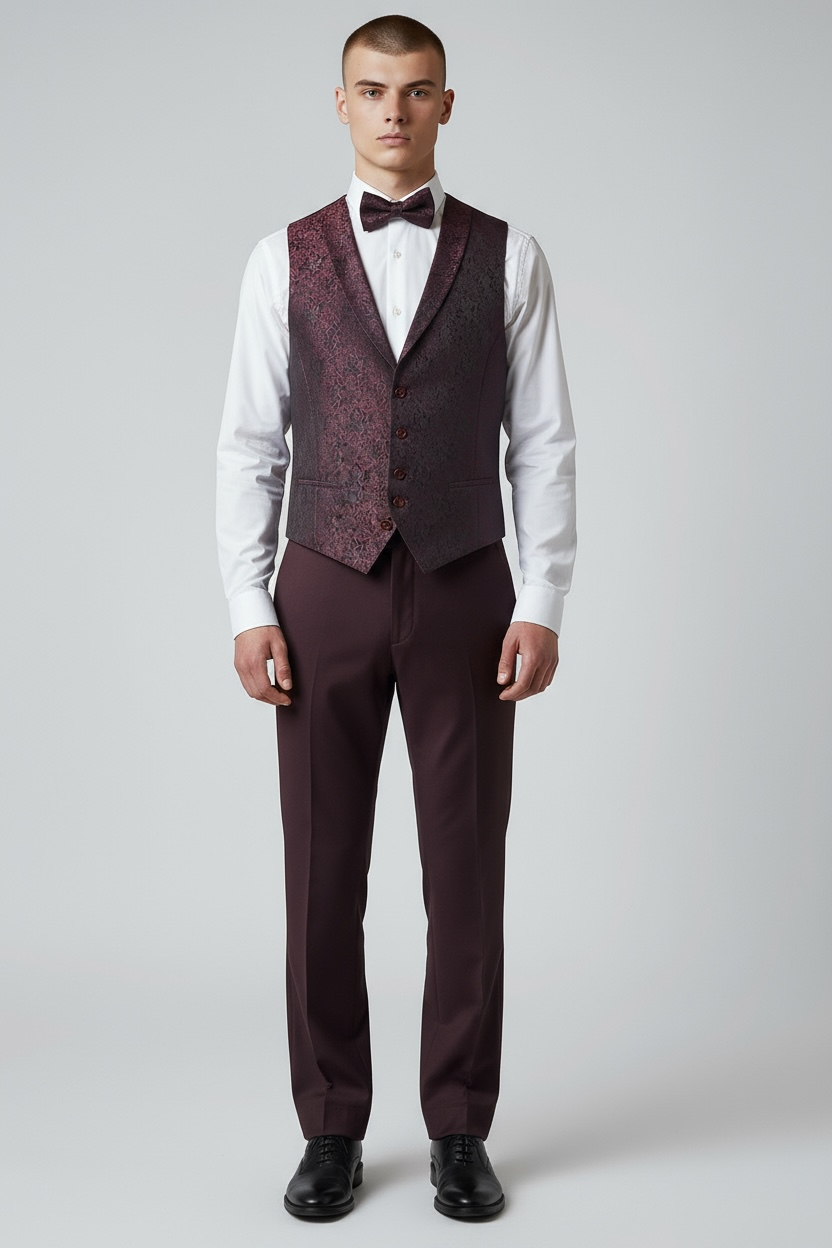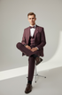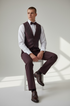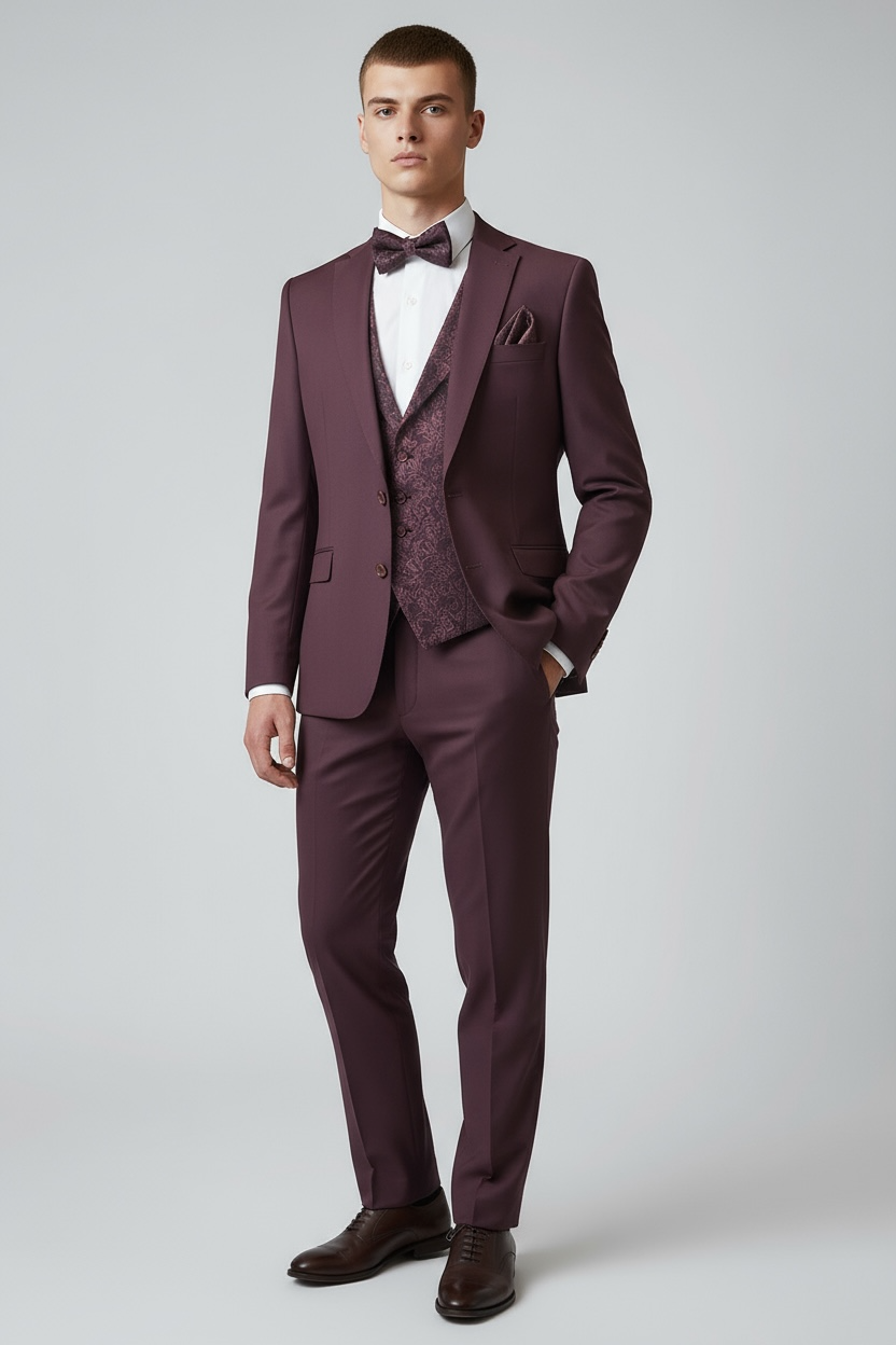 Eleganter 3-teiliger Anzug in Bordeaux mit gemusterter Weste