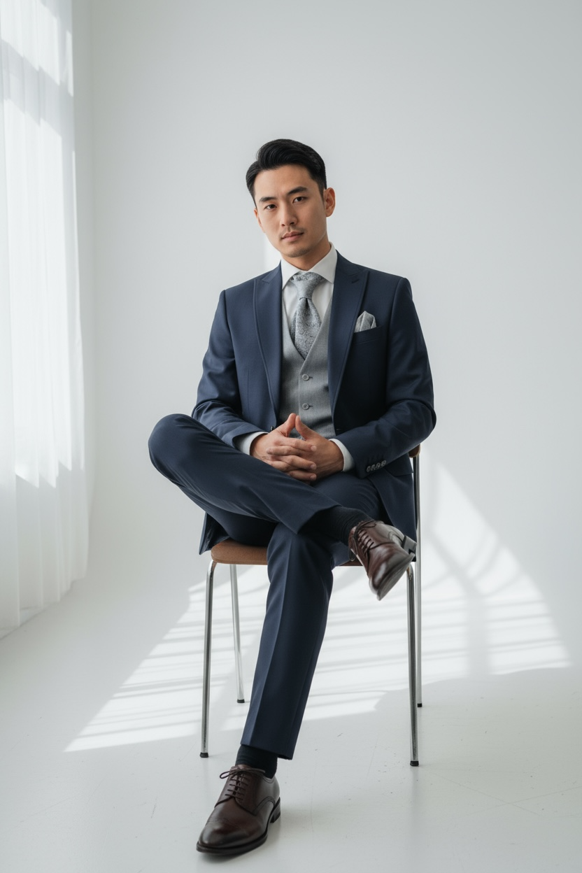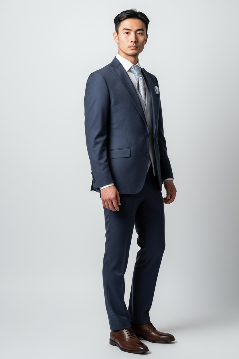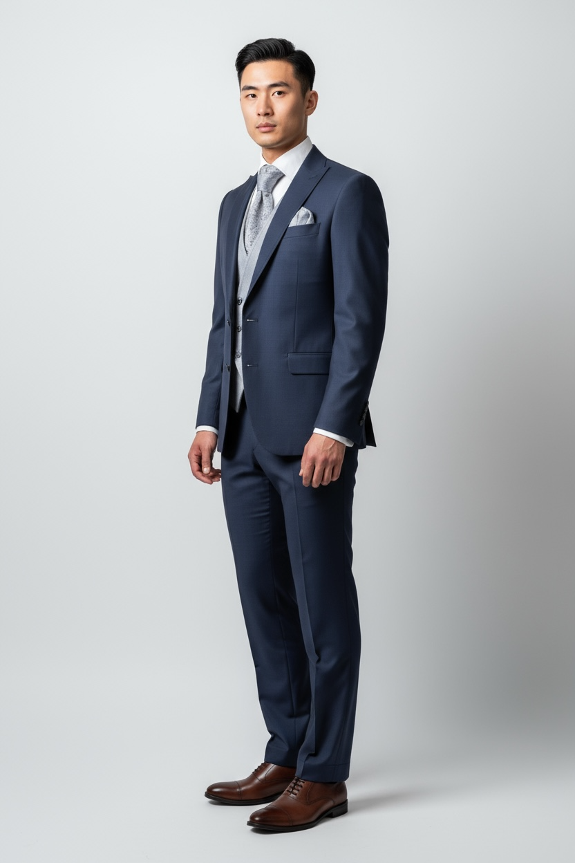 Eleganter 3-teiliger Anzug in Dunkelblau mit schön gemusterter Weste