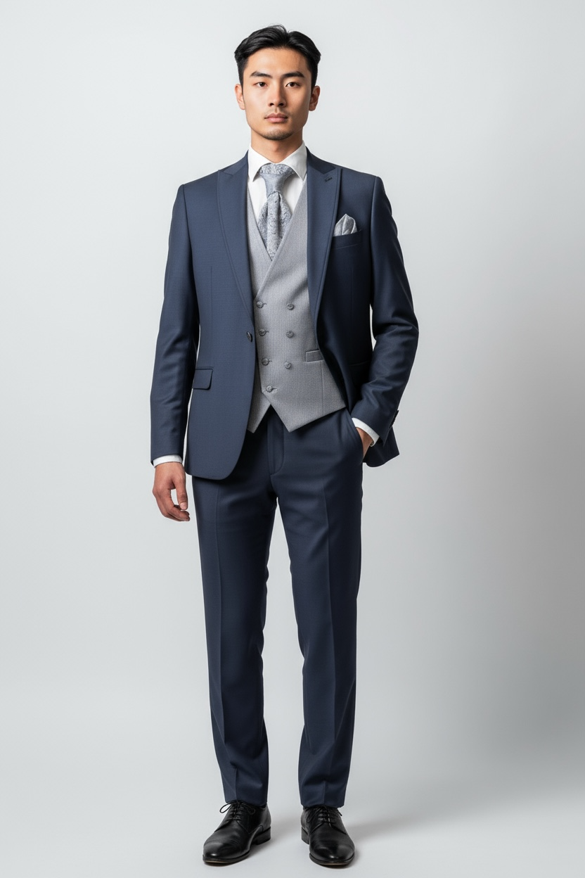✔ Tiefes Dunkelblau mit stilvoll gemusterter Weste