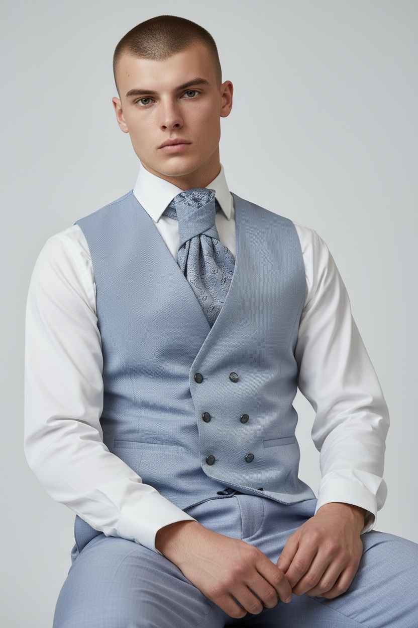✔ Stilvolles Hell-Graublau mit gemusterter Weste