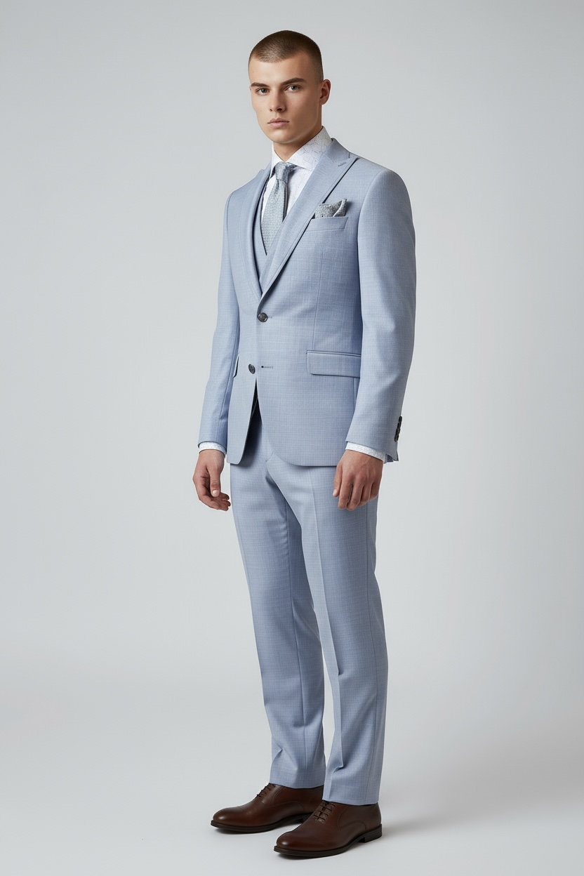 Eleganter 3-teiliger Anzug in Hell-Graublau mit gemusterter Weste